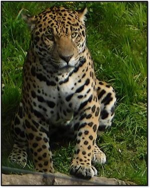 The third big cat in order of size, just smaller than the lion and tiger, at some 70 centimetres at the shoulder. It is also the only member of the five species of big-cat to inhabit the New World [Americas], whereas the other four species [lion, tiger, snow leopard, and leopard] all inhabit the Old World.