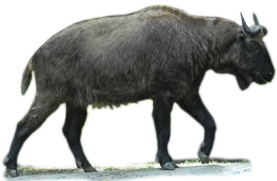 This large, herbivorous mammal is classified as just one species in its monotypic genus, and is native to relatively small areas of South East Asia. Four subspecies of takin are currently recognised – the Mishmi and Bhutan Takins both have a similar hide of varied brown, though the Sichuan and Golden Takins are more yellow. Where the Sichuan Takin’s yellowish hide has areas of brown and black fur, the Golden Takin is entirely yellow. Sometimes referred to as a 'goat-antelope', the takin is closely related to sheep and goats, though superficially resembles antelope. Superficial features, specifically the takin's horns, put it in an evolutionary link with the musk-ox, though this is now seen as a result of convergent evolution. The oldest known remains attributed to takins appear some 3 million years ago in Asia, though fossils attributed to takins have also been found in Africa.